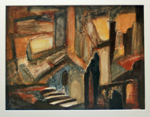 Steinbrüche. In meiner Malerei versuche ich diese Eindrücke und die dabei entstehenden Emotionen in eine mir entsprechende Bildsprache umzusetzen. Eine große Rolle spielt dabei das Licht. Hier ist der Eingang bzw. der Ausgang einer Höhle bedeutsam für mich. Hier ist der Schnittpunkt zweier Welten- Dunkelheit und Helligkeit- Feindlichkeit und Geborgenheit. In der Höhle dann nur sporadische Beleuchtung mit großartiger Schattenbildung, aber auch geheimnisvolle Nischen, die nicht ausgeleuchtet sind. Angst und überschäumende Freude liegen nebeneinander. Diesen Dualismus muss ich aushalten ! |
