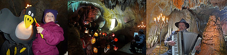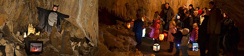 St.-Martinszeit an. Unbeeinflußt von Sonnenschein oder Regenwetter entfalten die bunten Laternen im Halbdunkel der Tropfsteinhöhle